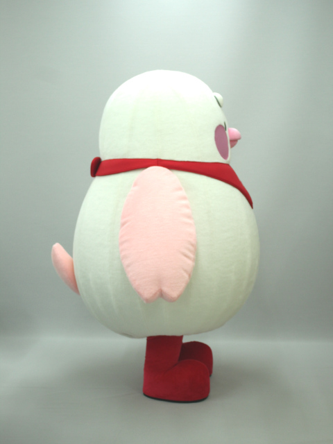 桜のつばさとスクールカラーの赤いスカーフがチャームポイントの桜文鳥なので、丸くてかわいらしいフォルムをエア着ぐるみで再現致しました。