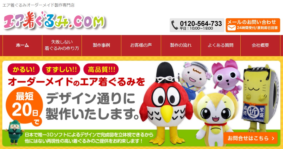有料サービスになりますが、質の高い着ぐるみをお求めの