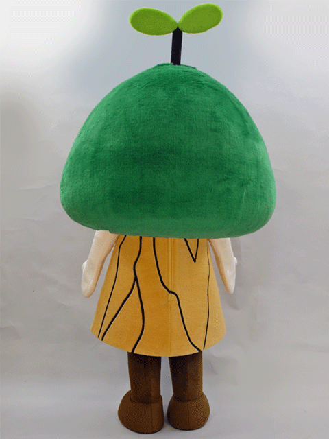 大きな山の形をした帽子を被っていて、胴体は木をイメージた模様になっている着ぐるみです。