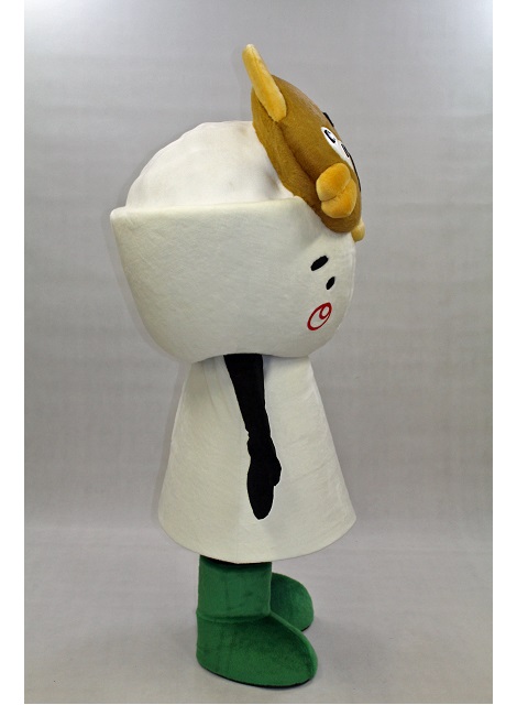 3頭身の着ぐるみで手足がしっかりと長いので動きやすい作りになっています。頭に乗っている「ヒラメちゃん」がとてもユニークなご当地ゆるキャラです。